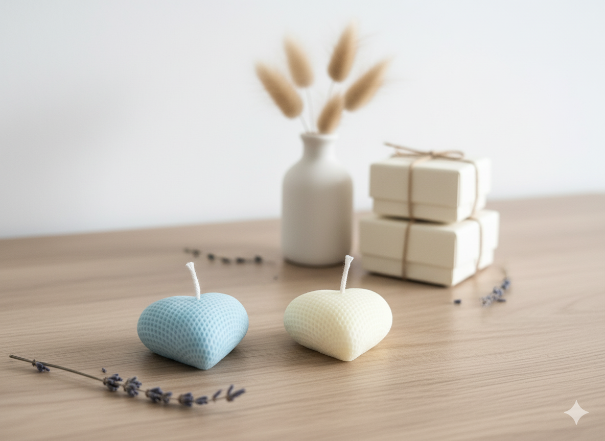 HANDCRAFTED DESIGN: Beautiful heart-shaped candles with unique textured honeycomb pattern surface, perfect for creating a romantic atmosphere.