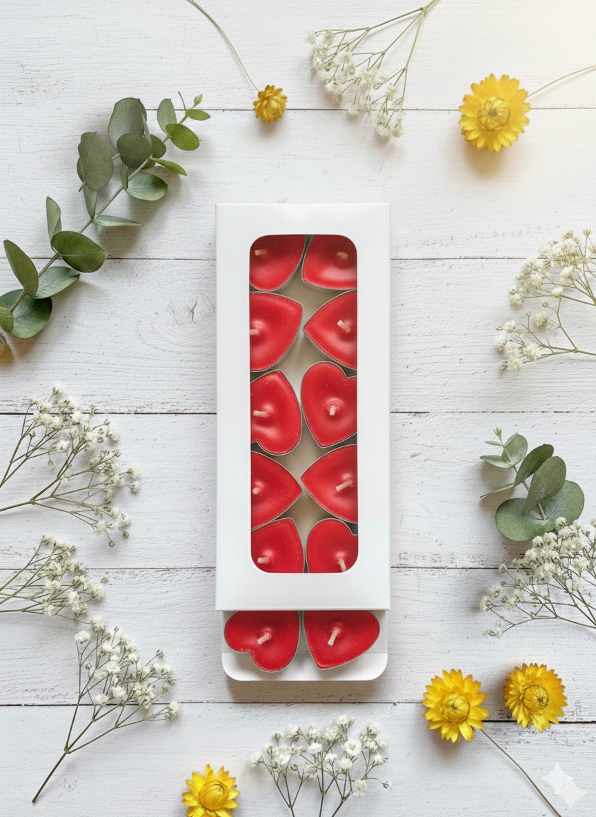 ELEGANT HEART-SHAPED DESIGN: Infuse your space with romance and warmth with this set of beautiful heart-shaped tea lights/melts. Their vibrant color and perfect heart shape make them an ideal centerpiece for Valentine's Day, anniversaries, or simply creating a cozy, loving atmosphere at home.